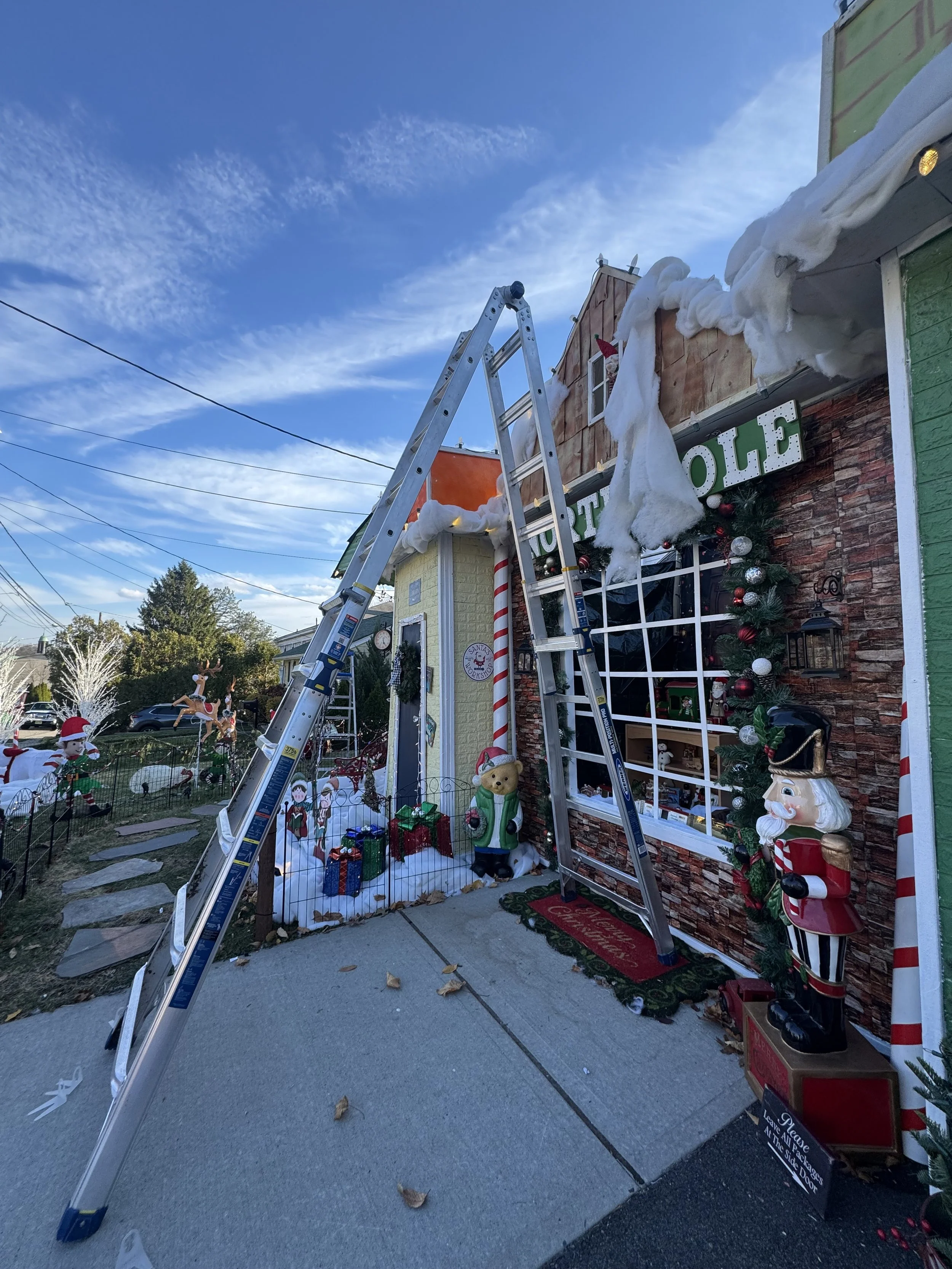 Some of our props are store bought, but many are handmade. I built and also installed almost all of the facade myself. The build was mostly fun, but at times extremely grueling and labor intensive. I’ve worked out a lot in my life but my body felt almost like when I ran a marathon a few times! it’s crazy how the physical labor of building can feel pretty draining! Just reaching up painting or drilling . I guess the body is not used to some of the positions, so it can feel rather tough. But I kept pushing through bc I just love the end result. I had the worst drawings/plans for the display, but the outcome was rather on point and the measurements were fairly accurate because everything lined up just like I had imagined. It’s so fun to see my ideas come to life. I guess that is really why I do it. I like the challenge and to see if I can create what I had imagined. I love to see people enjoying what we created here and the smiles on kid’s faces. It’s really all worth it in the end. It’s never about being better than anyone else or competing to be the best display (we don’t even have a competition here) but rather just doing it mostly for myself as a challenge/goal, for my kids, and for the community, because I know they really appreciate it and like it.