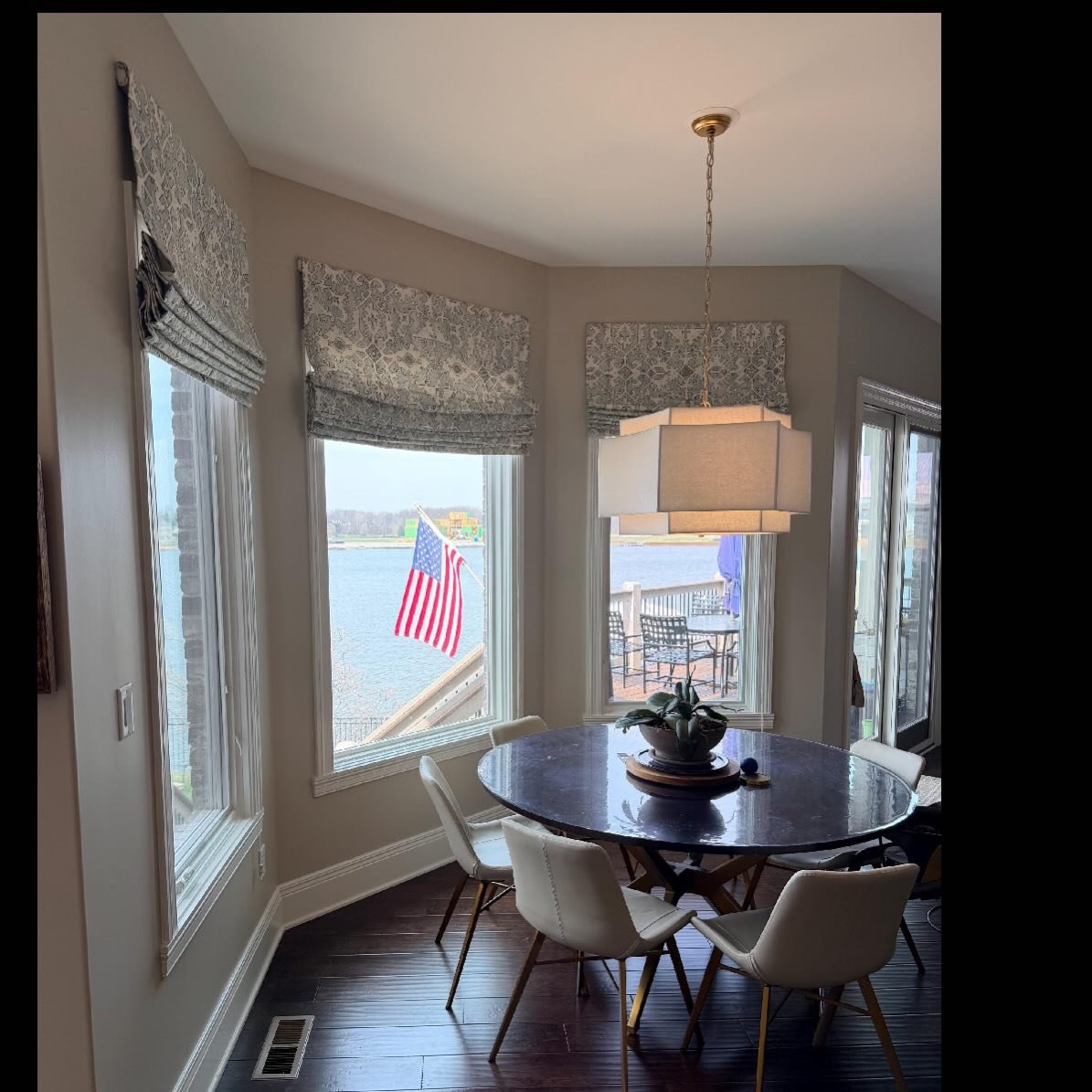 Roman Shades using Our “French Grey Beauty” supplied fabric